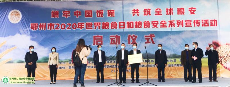 10月16日,市发改委、市农村农业局、市教育局、市科技局、市妇联等部门在凤凰广场举行2020年世界粮食日和粮食安全系列宣传活动启动仪式。活动现场,市委常委、常务副市长李忠禄向樊口国家粮食储备库经理刘汉胜授予省级粮食安全宣传教育基地牌匾。