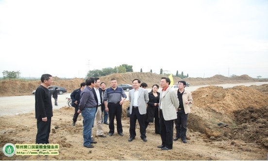 2012年10月19日,省粮食局副局长费仁平一行来我库检查工作,同时亲临新库区建设现场指导工作,市粮食局领导潘德江等,粮库法人代表、经理刘汉胜全程陪同。