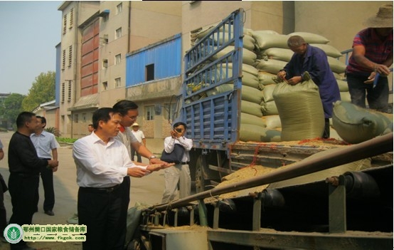 2012年10月4日,省粮食局副调研员谭富生一行来我库调研粮食收购工作。