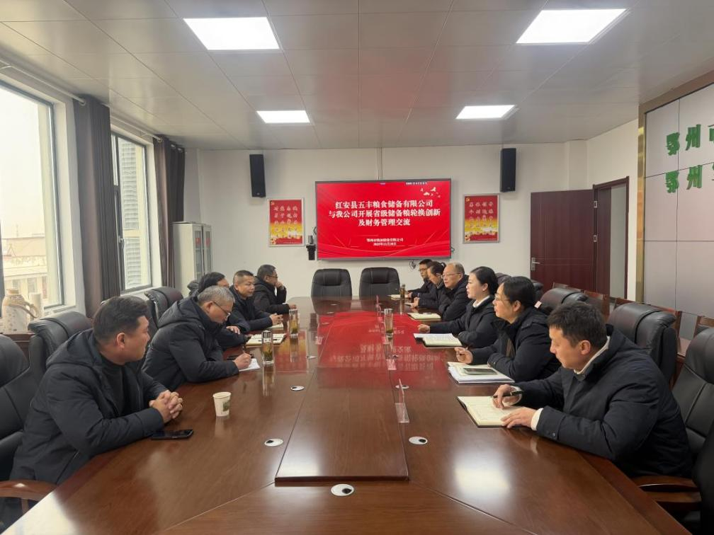 2025年12月30日,红安五丰粮食储备有限公司党支部书记、总经理郑保华一行莅临鄂州市粮油储备有限公司,开展业务交流座谈。双方紧扣粮食购销计划、财务管理等核心业务,深入交流经验、凝聚合作共识。